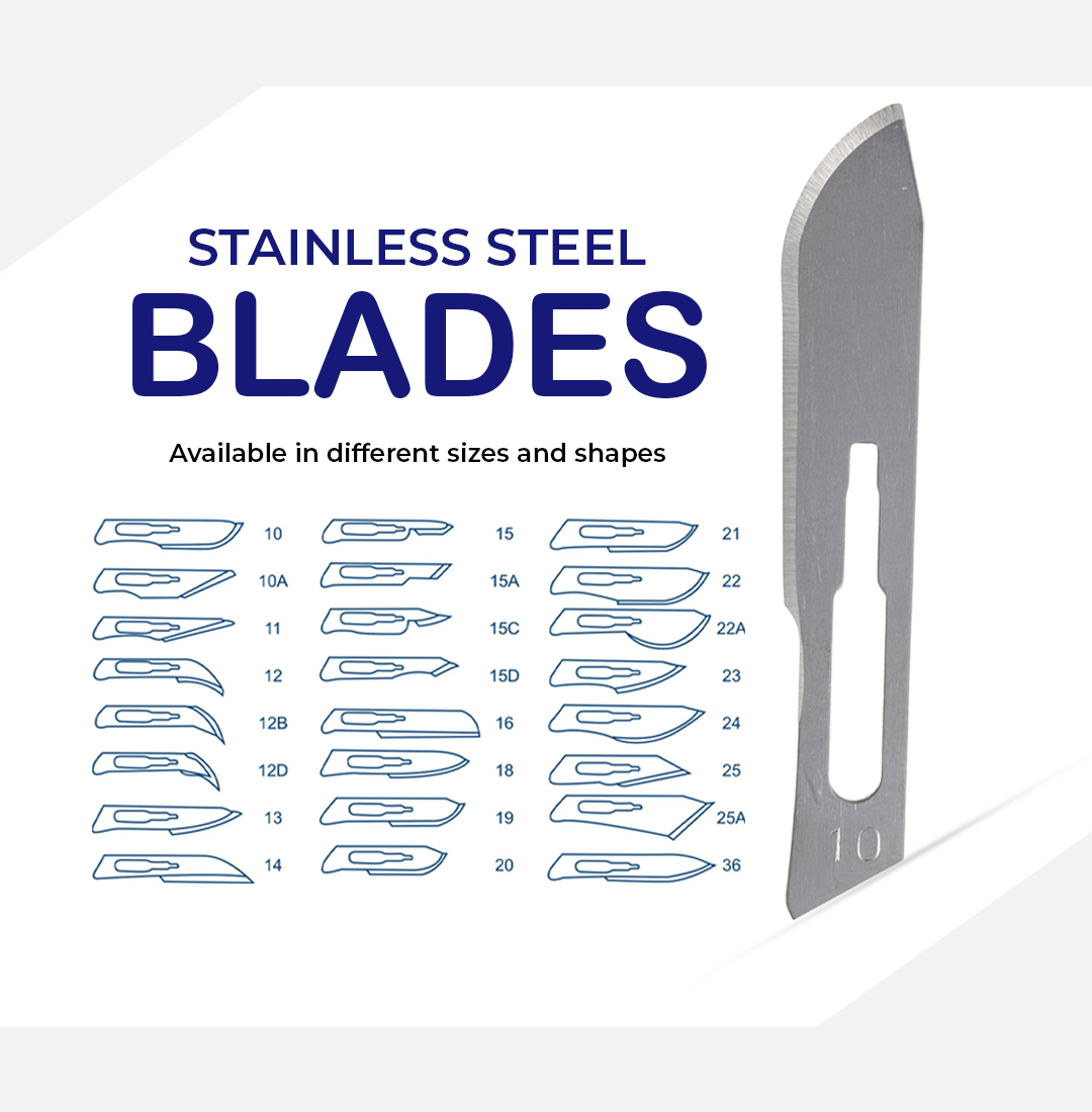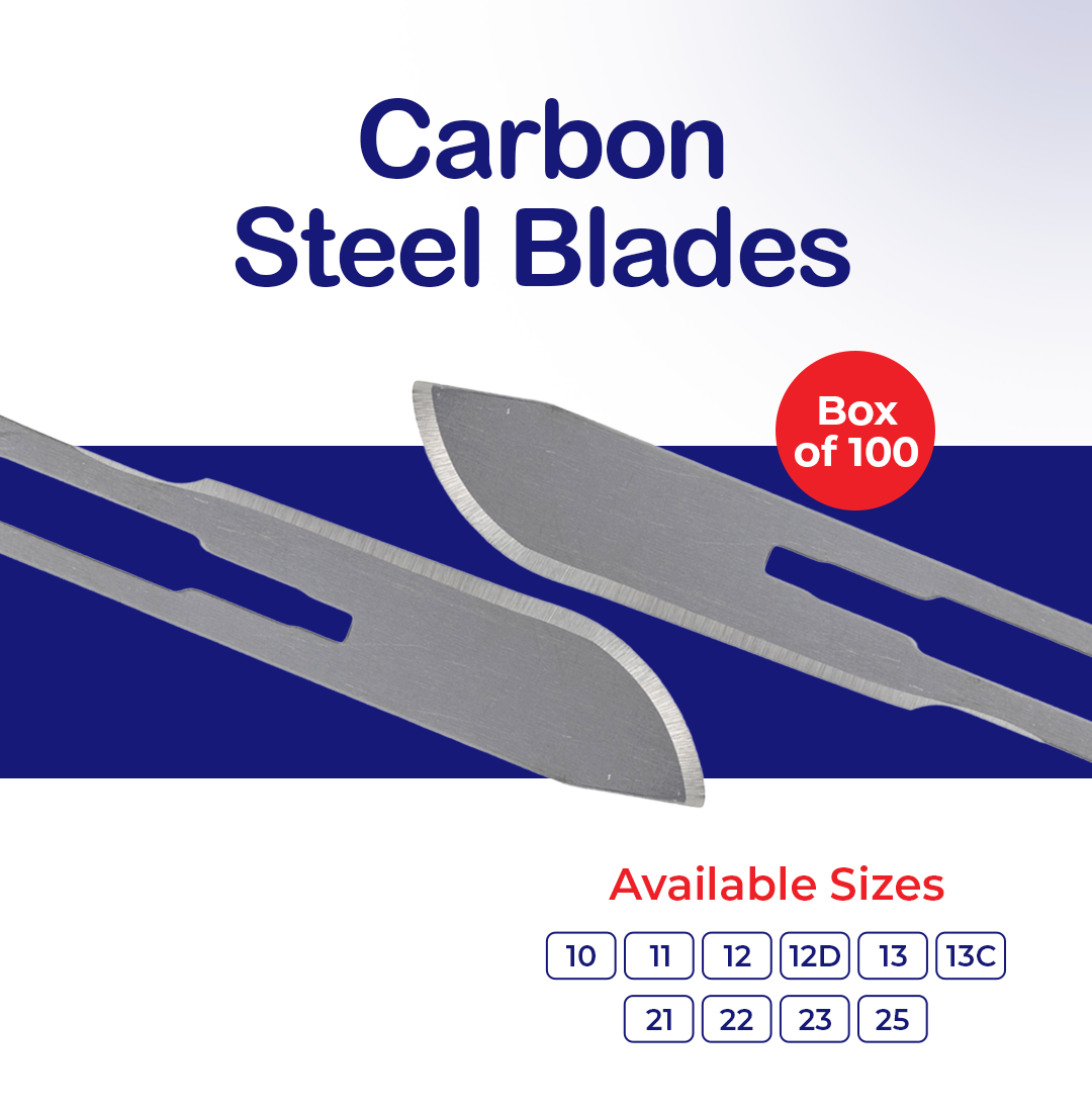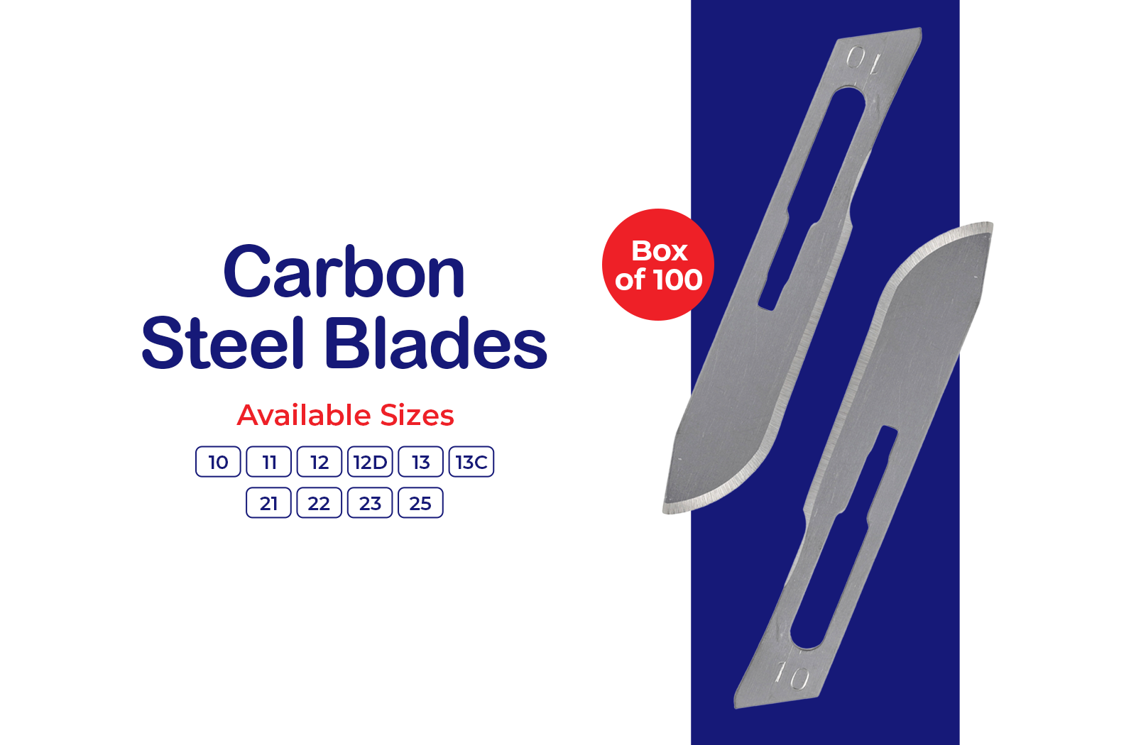 Our Carbon Steel Blades deliver surgical-grade sharpness and consistency—ideal for medical, lab, and grooming use. Dependable. Sterile. Ready. Also available in Stainless Steel for added durability.