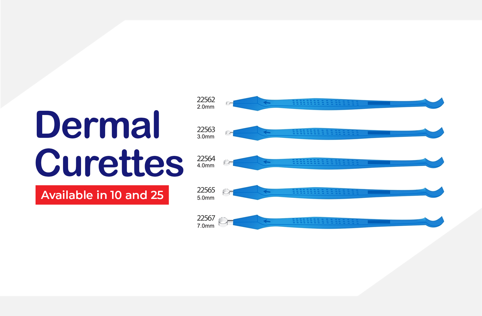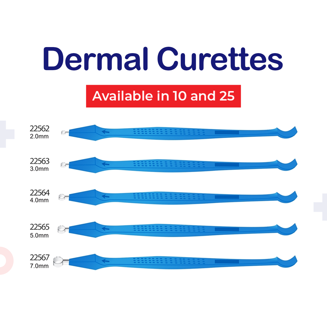 Sterile, safe, and effective—our dermal curettes feature an easy-grip handle, stainless steel end, and a protective tip to ensure precision and user safety.